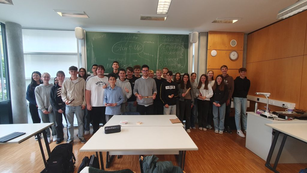 Er erklärte, was ein Start-up ausmacht, welche Schritte zur Gründung gehören und welche Herausforderungen dabei zu meistern sind. Anschließend entwickelten die Schülerinnen und Schüler gemeinsam mit Herrn Maile eine kleine Innovation zu seinem Produkt und erlebten so hautnah, wie kreative Ideen entstehen.