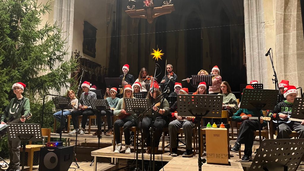 Schülerinnen und Schüler unterschiedlicher Klassenstufen präsentierten ein abwechslungsreiches Programm, das sowohl klassische als auch moderne Arrangements umfasste. Unterstufenchor, Kammerchor, Kammerorchester, Ukulelen-Band sowie ein Stück für Orgel und Tuba trugen zur Vielfalt des Abends bei und zeigten eindrucksvoll das musikalische Können und Engagement der Mitwirkenden.