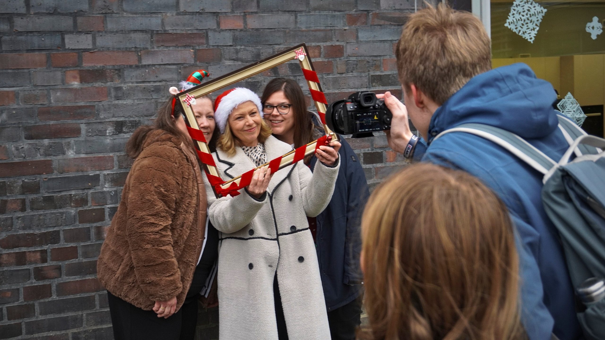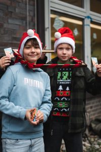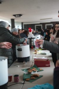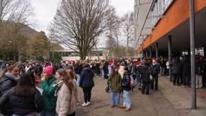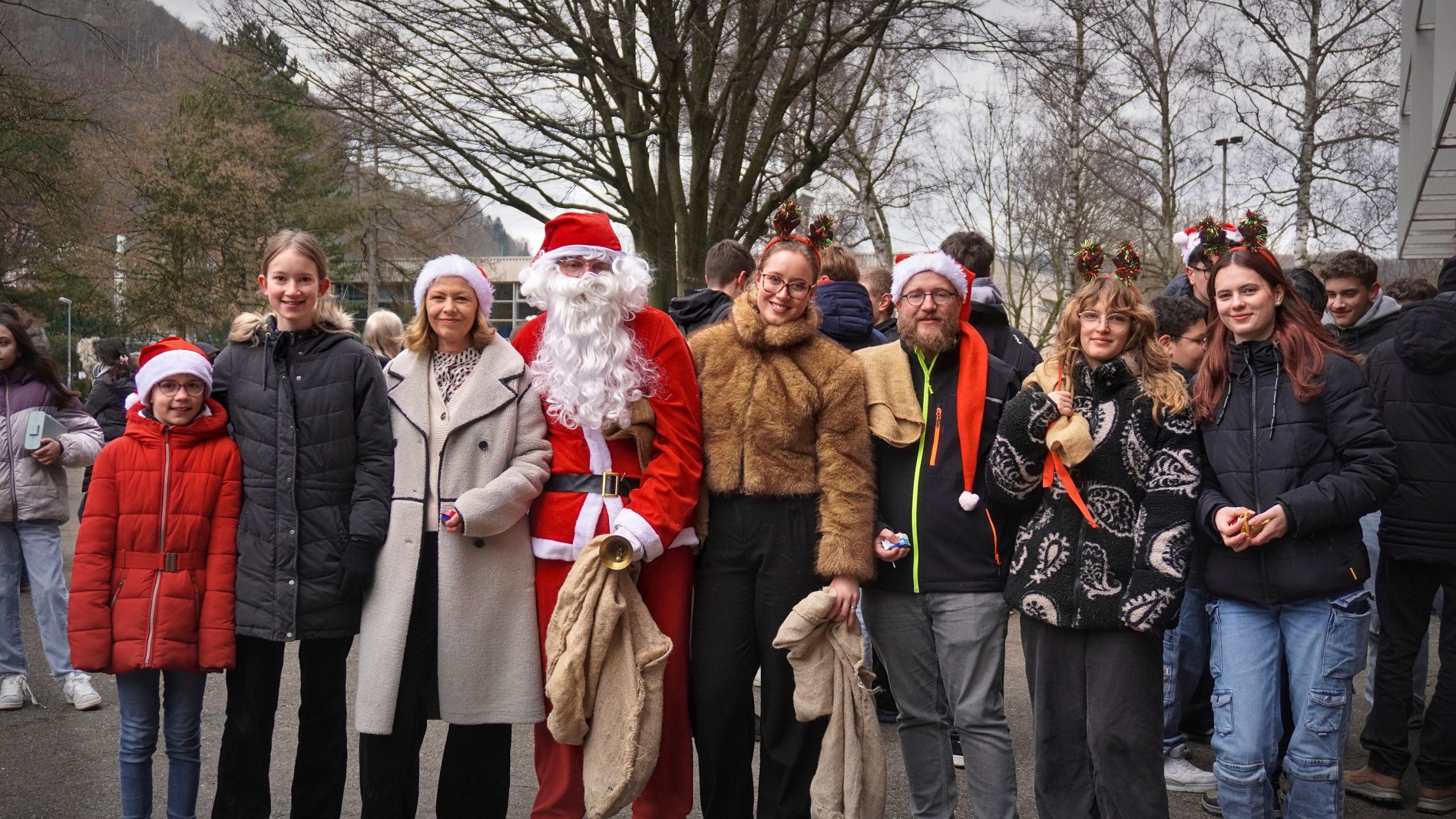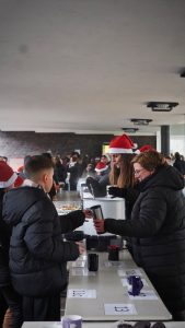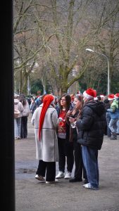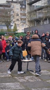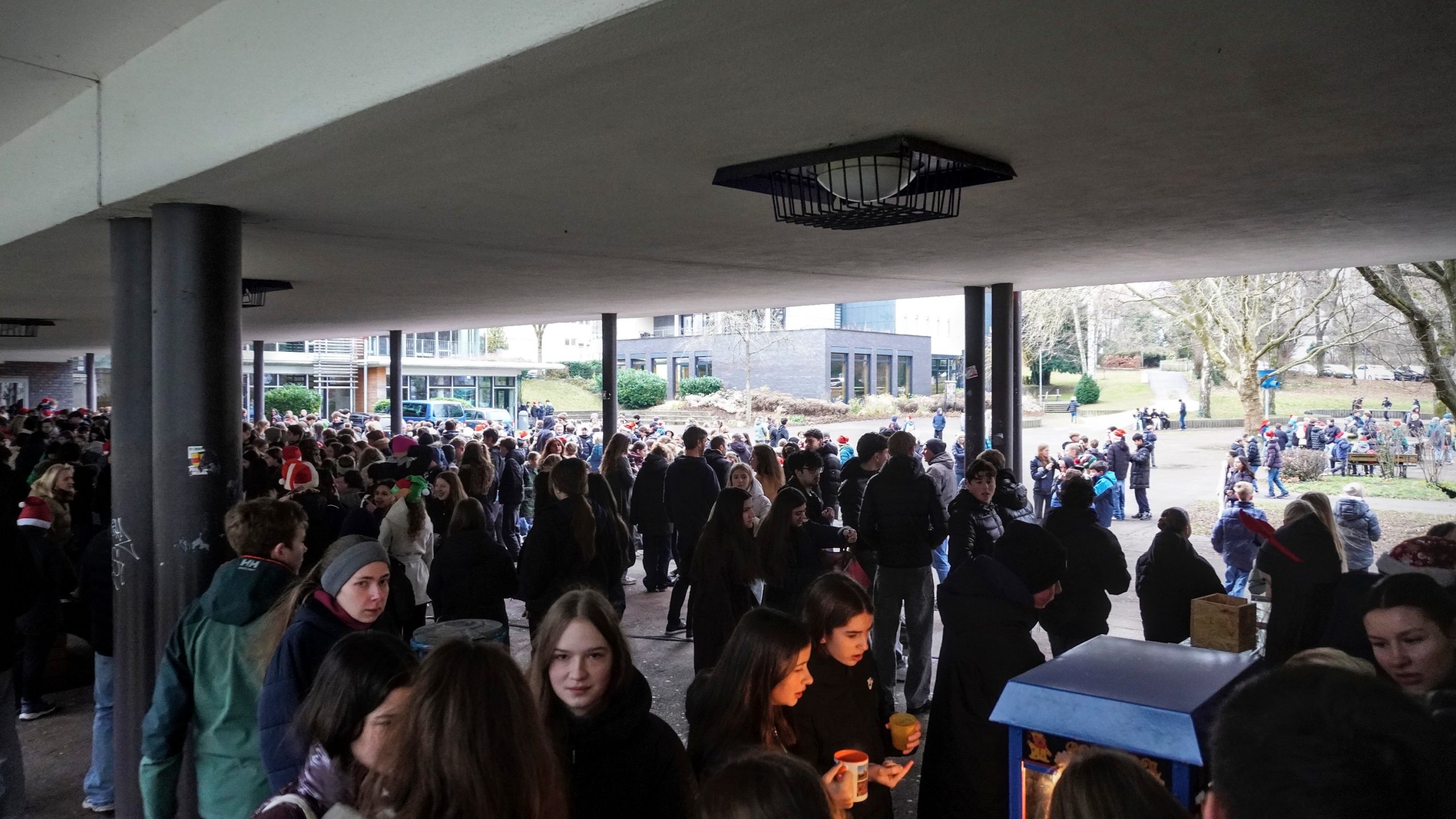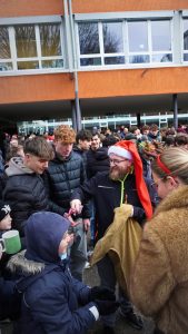 Doch auch die Schülerschaft trug zum Gelingen des Weihnachtszaubers bei. Die Jahrgangsstufe 2 bot frisch gebackene Waffeln und Popcorn an, während die SMV verschiedene Spiele organisierte. Zudem wurde eine Fotoecke aufgestellt, bei dem sich die Schüler/-innen und auch Lehrkräfte fotografieren lassen konnten. Begleitet wurde das bunte Treiben auf unserem Schulhof außerdem von weihnachtlicher Musik, die die festliche Stimmung noch mehr betonte.
